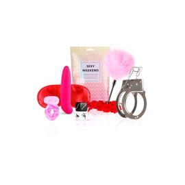 Sexy Weekend - набор, состоящий из 7 предметов. В комплект входят: - вибромассажер розового цвета, - серебристые металлические наручники, - пуховка с розовыми перьями, - красная маска на глаза закрытого типа, - эрекционное кольцо с вибрацией розового цвета, - красные лепестки роз, -...