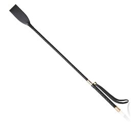 Классический стек с плетеным гибким телом и окончанием в виде кожаной хлопушки. Характеристики: Полная длина: 54 см Длина ударной части: 9 см Материал: искусственная кожа Цвет: черный
