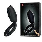 Эрекционное виброкольцо Esther с клиторальной щеточкой и подхватом мошонки, черное
