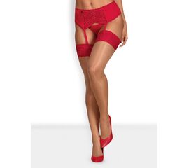 Чулки женские телесного цвета с алыми кружевными резинками предназначены для ношения с поясом. Характеристики: Состав: полиамид 90%, эластан 10% Торговая Марка: Obsessive Тип белья: Чулки, пояса Цвет: телесный Цвет резинки: алый Размер: S/M