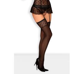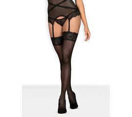 Чулки женские с резинками из кружева предназначены для ношения с поясом. Характеристики: Состав: нейлон 90%, эластан 10% Торговая Марка: Obsessive Тип белья: Чулки, пояса Цвет: черный Размер: S/M