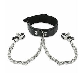 Яркий атрибут для тех, кто хочет не только примерить на себя роль Сабмиссива, но и обострить собственные ощущения. Ошейник с зажимами на соски пока ваш Доминант будет наслаждаться собственным превосходством, вы сможете получить незабываемое наслаждение. Ошейник средней ширины выполнен из кожзама....