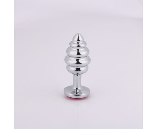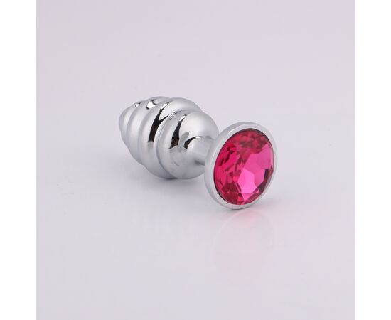 Анальная пробка металлическая со стразом рельефная, Small, серебряная
