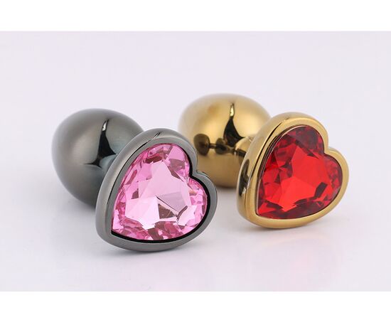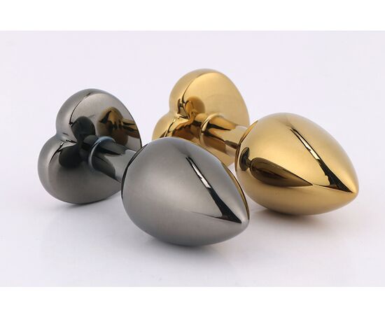 Анальная пробка металлическая со стразом сердце, Small, золотая
