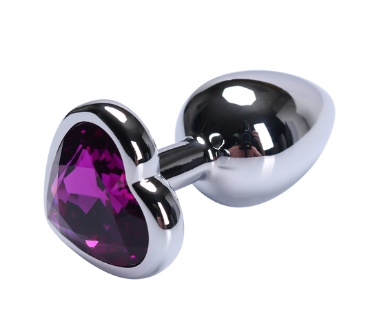 Анальная пробка металлическая со стразом сердце, Small, серебряная