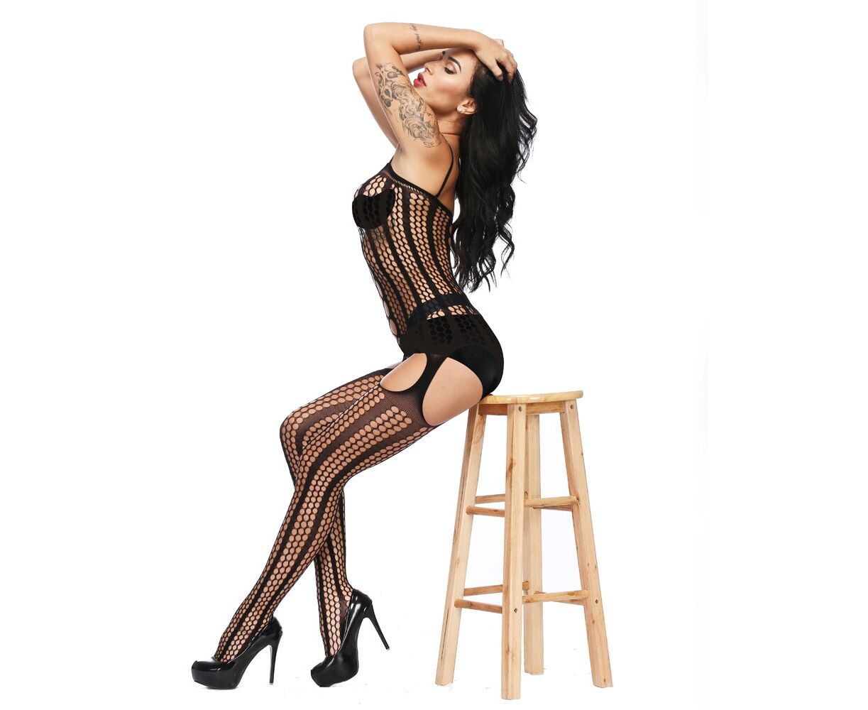 Хотите впечатлить своего мужчину соблазнительным нарядом? Этот боди-комбинезон с имитацией чулок воплотит ваши мечты в реальность. И, конечно, самое важное - это пикантный вырез, который даёт возможность оставаться в белье даже во время интимной близости.
