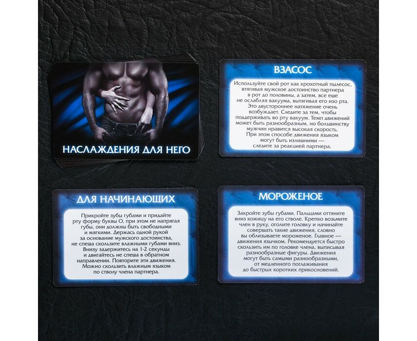 Внутри вы найдёте карточки трёх видов: Наслаждение для нее, Наслаждение для него и Наслаждение для двоих.