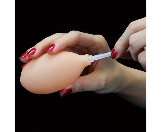 Для использования функции семяизвержения, отсоедините грушу, наполните ее жидкостью и вставьте обратно шланг. В нужный момент просто сожмите грушу. Из головки фаллоса польется жидкость.