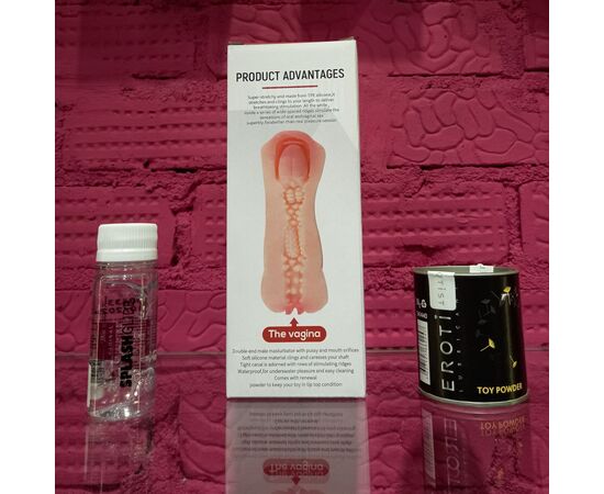 В дополнение к мастурбатору в набор входят идеально подходящий лубрикант Splashglide VAGINAL, имитирующий естественную смазку и пудра Erotist Toy Powder, которая поможет сохранять изначальную мягкость и упругость игрушек, делая её бархатистой, а ощущение от прикосновений к ней станут еще более живым.