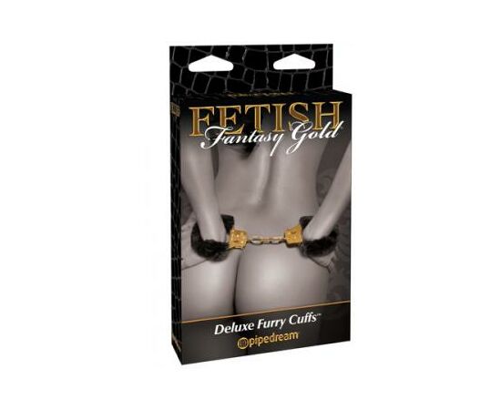 Наручники Deluxe Furry Cuffs с мехом черные с золотом