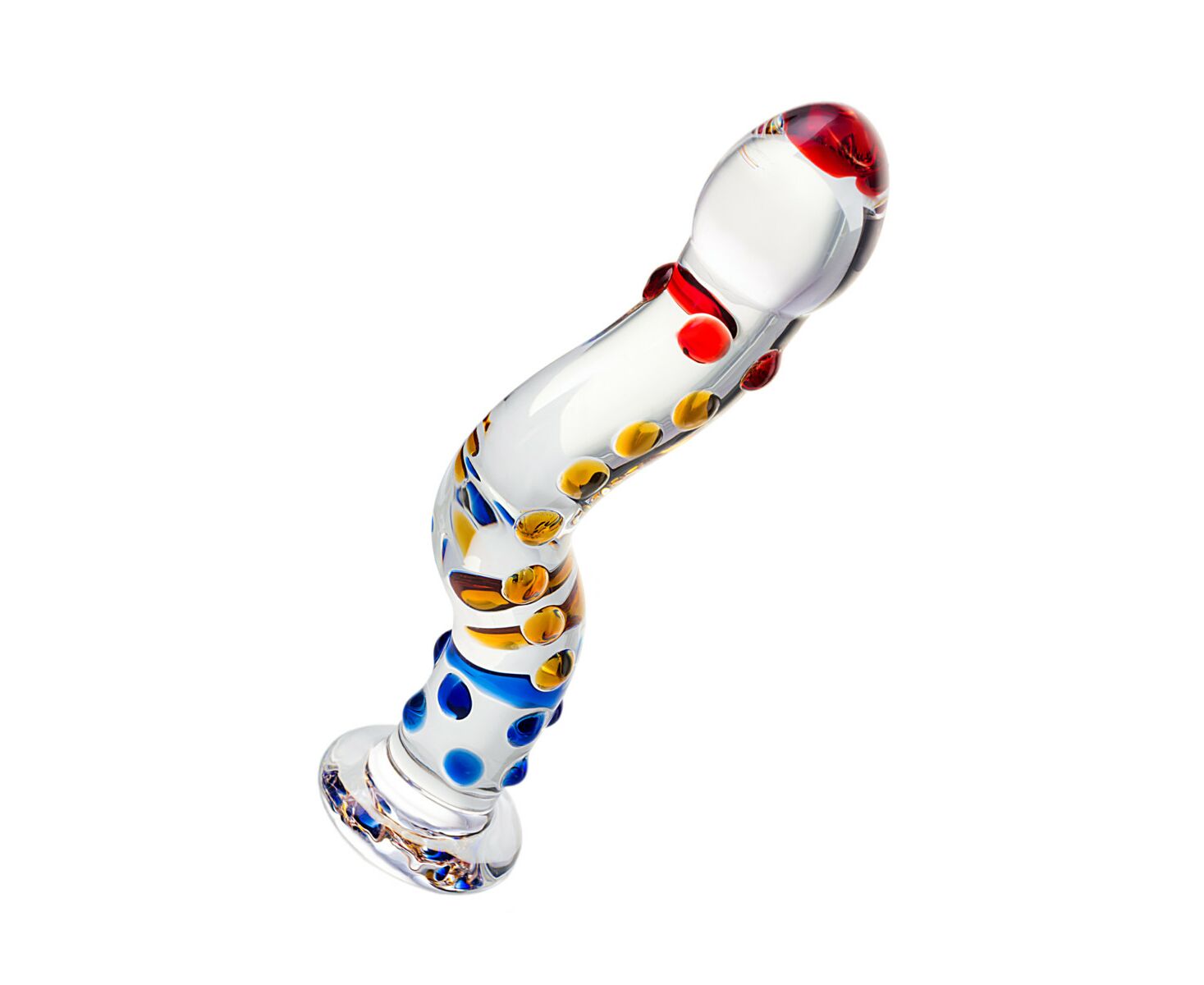 Крупная гладкая головка, волнующий изгиб, яркие точки, украшающие ствол и дарящие дополнительную стимуляцию, — этот фаллос из закалённого стекла выводит интимные игры на высочайший уровень! Ведь его изысканный и анатомически продуманный дизайн — лишь часть преимуществ. Стекло не бьётся, является самым гипоаллергенным материалом из имеющихся на сегодняшний день, за ним легко ухаживать и его можно нагревать или охлаждать. С таким фаллосом множественный оргазм неизбежен!
