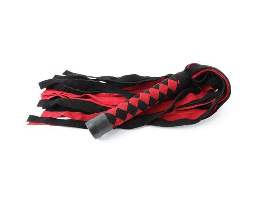 Нежная плеть из замши, черно-красный. С плетеной рукоятью