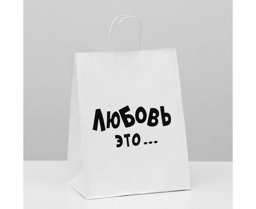 Пакет подарочный с приколами, крафт «Любовь это...», белый, 24 х 14 х 30 см