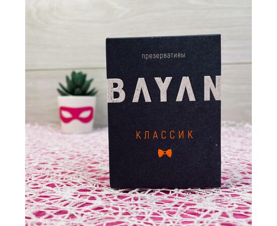 BAYAN «Классик» — ультратонкие презервативы для искушённых идеалистов. Покрыты смазкой на силиконовой основе. Отличаются ультратонкими стенками, которые подарят комфорт и максимально естественные ощущения. Они позволят насладиться каждой секундой близости и каждым движением. Несмотря на уменьшенную толщину стенки, они надёжно защищают вас от заболеваний, передающихся половым путём, и от нежелательной беременности. Обильно покрыты гипоаллергенной смазкой на силиконовой основе, что гарантирует дополнительный комфорт и безопасность. ВAYAN — русский дух с немецким качеством.