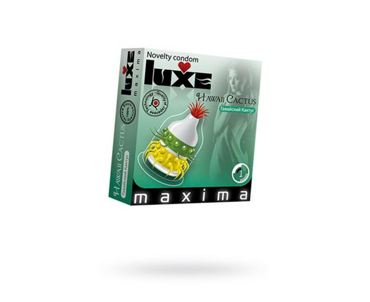 Luxe Maxima Гавайский Кактус, это презервативы из латекса с мягчайшей силиконовой смазкой и запоминающимся дополнительным эффектом в виде эластичных усиков. Почему кактус? Потому что на поверхности презерватива расположены длинные, мягкие колючие усики, которые во время интимной близости затрагивают самые чувствительные эрогенные зоны партнёрши и обеспечивают сильнейший всплеск сексуального возбуждения.
