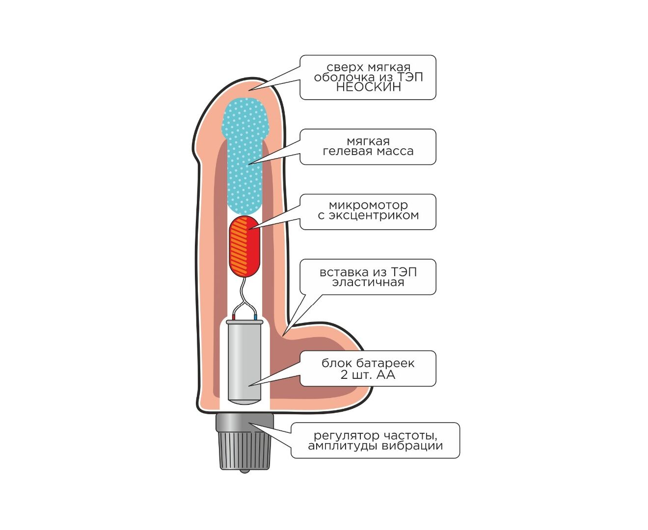 Для более длительного срока службы, рекомендуется вынимать из вибратора батарейки после использования.
