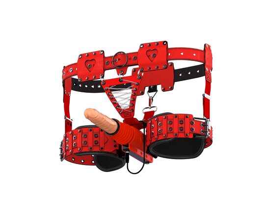 Металлическая фурнитура придает этой игрушке очень стильный вид. Размеры всех частей регулируются. Насадка-фаллоимитатор съемная, ее можно заменить на насадку другой формы и размера (в комплект не входят). Управляется данный девайс с помощью дистанционного пульта управления. Насадка имеет функцию вибрации и нагрева.