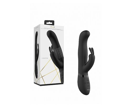 Izara – вибромассажер-кролик в классическом исполнении. Он изготовлен из высококачественного, мягкого, нежного на ощупь 100% медицинского силикона с пылеотталкивающими свойствами и прочного, элегантного АБС-пластика. Вибромассажер оснащен инновационными электродвигателями нового поколения F1. Преимущество такого типа двигателя в том, что он делает интенсивную стимуляцию очень мягкой даже при мощном максимальном воздействии. Игрушка имеет три мощных отдельных мотора, каждый из которых обеспечивает 10 функций вибрации, способной достигать 9200 и 10000 оборотов в минуту. Это дает возможность настраивать более чем 1000 уникальных комбинаций.