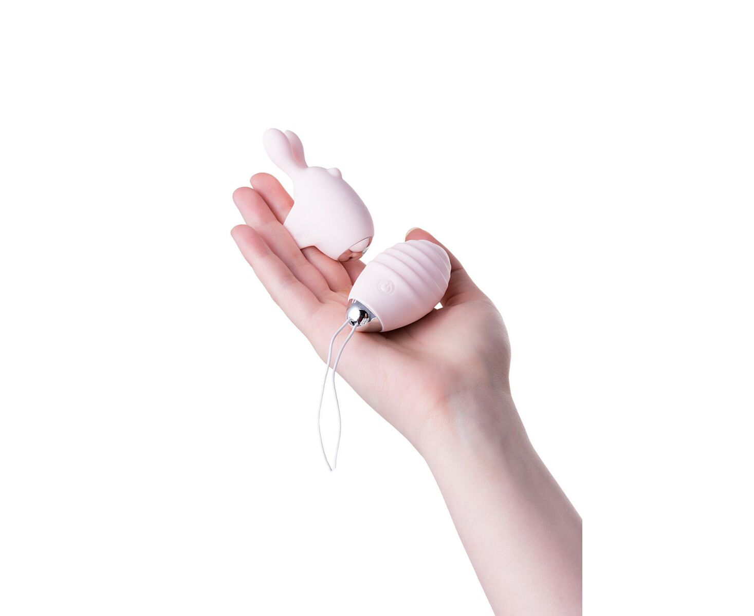 VITA – множество вариантов удовольствия для двоих! Эти игрушки работают как в паре, так и по отдельности. Зайчик – это одновременно вибронасадка на палец и пульт дистанционного управления пулей.
