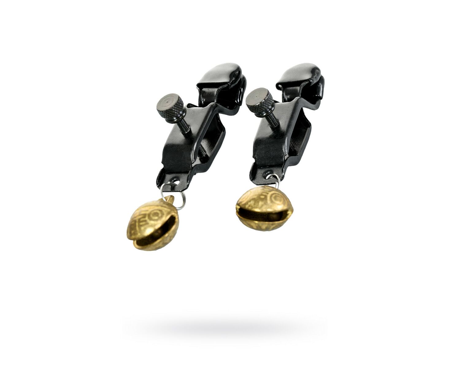 Зажимы для сосков с бубенцами Theatre. Цвет: черный с золотым