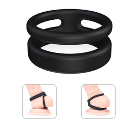 Два кольца плотно и комфортно обхватывают мошонку и корень полового члена. Будет вам служить надежным помощником в средстве продления полового акта. Характеристики: Материал: 100% силикон Цвет: Черный Бренд: S-Hande