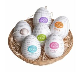 Tenga Eggs - набор мастурбаторов из мягкого и эластичного материала, сделанных в форме яйца. Внутренняя поверхность массажеров покрыта различными рельефными рисунками, каждый мастурбатор имеет уникальный рельеф. Стимуляторы хорошо растягиваются и принимают необходимую форму, прилегая к пенису....